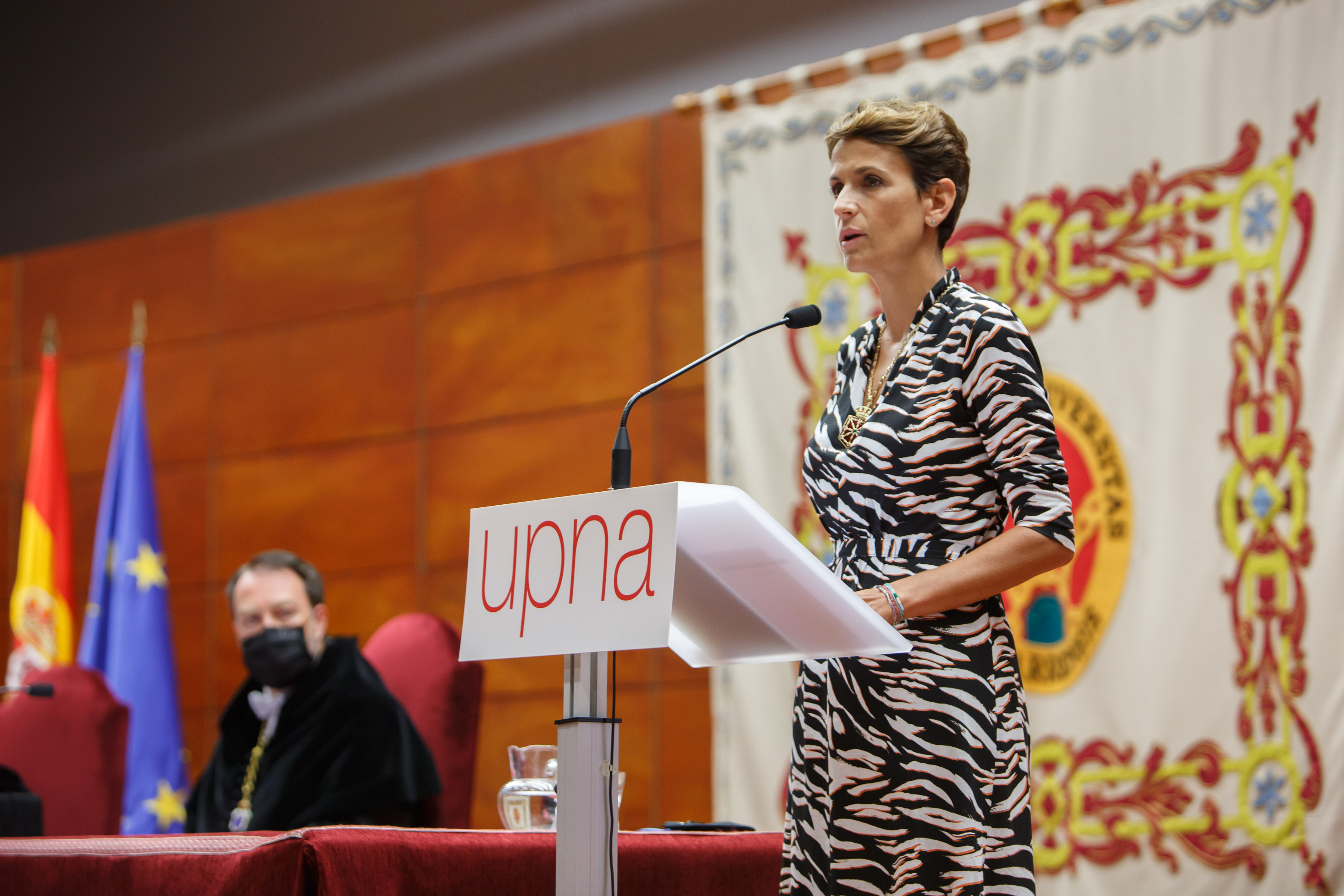 Nafarroako Lehendakari María Chivitek, Nafarroako Unibertsitate Publikoko (NUP) 2021-2022 ikasturteari hasiera emateko ekitaldian, sektore publiko bio-osasunari ikerketa eta irakaskuntza indartzeko apustua egin du.