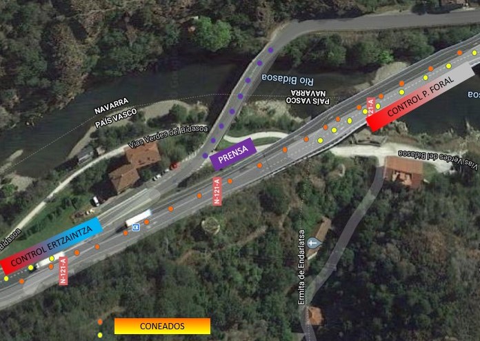 Muga de Endarlatsa., Carretera N- 121-A. Punto kilométrico 68, 450 N-121-A (Pamplona – Behobia)., Endarlatsa.