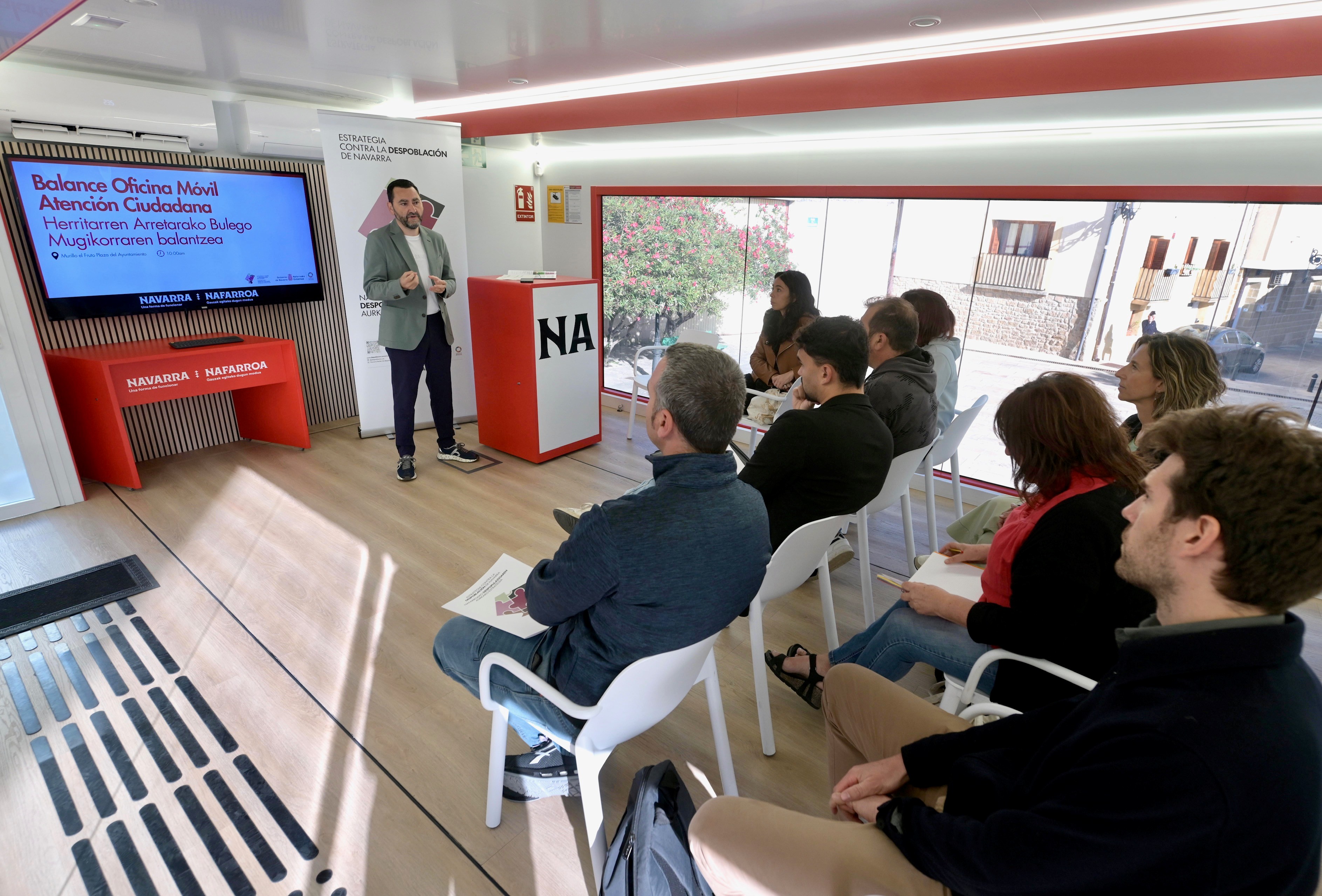 Lurralde Kohesiorako Departamentuaren Toki Administrazioaren eta Despopulazioaren zuzendari nagusia den Jesus Maria Rodriguez eta NASERTIC enpresa publikoko zuzendari kudeatzailea den Luis Campos Iturralde gaur goizean bildu dira Murillo el Fruton zonaldeko alkateekin eta Erdiguneko Toki Ekintza Taldeko ordezkariekin, Herritarren Arretarako Bulego Mugikorrak despopulazio-arriskuan dauden udalerrietan azken asteetan eskainitako zerbitzuaren balantzea egiteko.