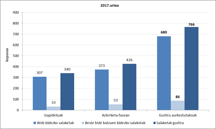 44. grafikoa. Izapidetutako salaketak, izapidetze motaren arabera
