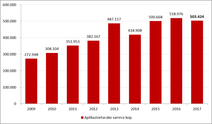 53. grafikoa. Interneteko bulego birtuala. Aplikazioetarako sarreren denbora-bilakaera