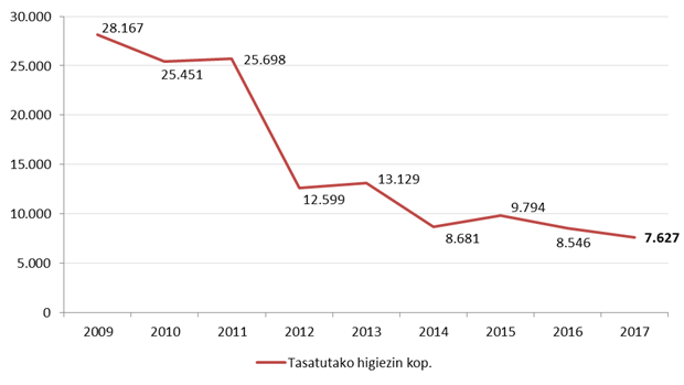 61. grafikoa. Tasatutako higieizinen kopuruaren denbora-bilakaera