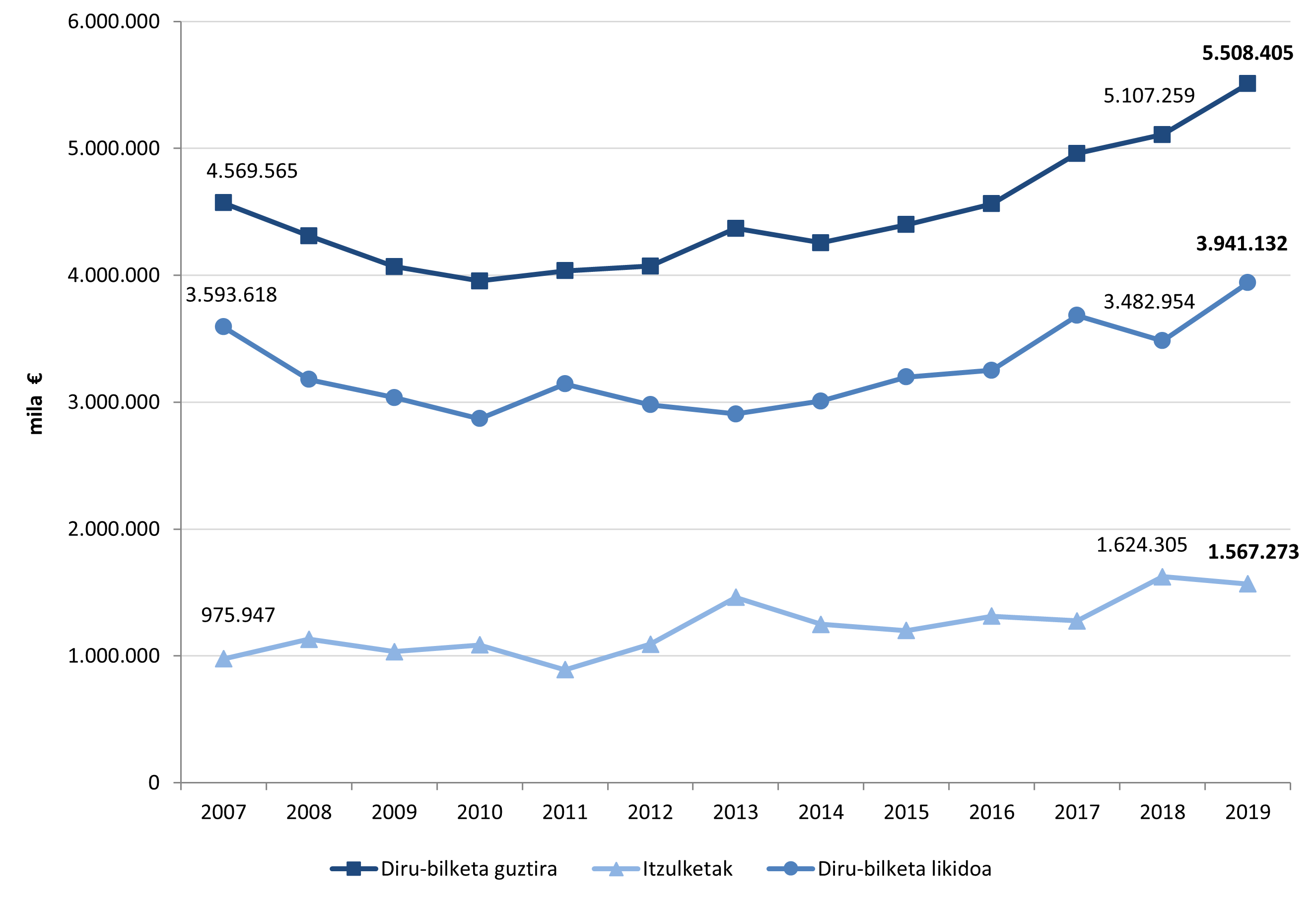 Diru-bilketa likidoa | 3.593.618 | 3.179.189 | 3.036.156 | 2.868.906 | 3.142.504 | 2.978.590 | 2.907.130 | 3.007.566 | 3.198.430 | 3.249.732 | 3.682.671 | 3.482.954 | 3.941.132 |