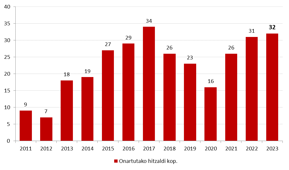 54. grafikoa. Onartutako balorazio txostenen kopuruaren bilakaera denboran.