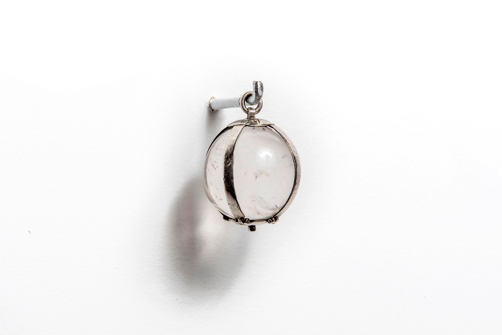 Deskribapena: Beira zeharrargizko kontu esferiko leundua, zilarrez engastatua, zeharkako lau uztai lisorekin eta bi zorro biribilekin errematatua; goikoak zortzi puntako izar edo lore moduko grabatua du, eta behekoak izar-ebakidura sinpleak eta botoia. Esekidura-uztaia.