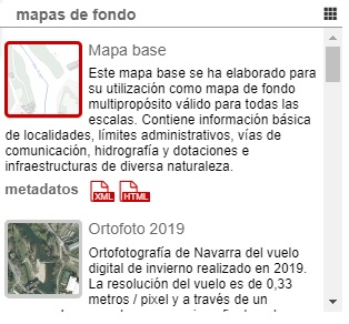 La vista detallada incluye una descripción del mapa de fondo, así como el acceso a sus metadatos en caso de que estos existieran.