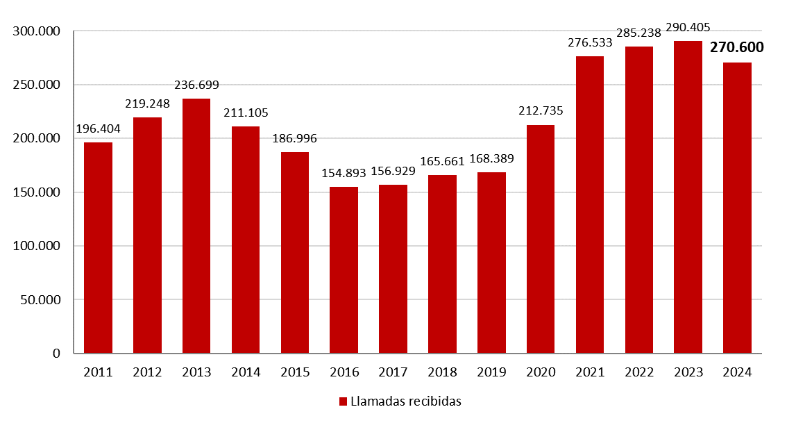 Gráfico nº 24. Evolución temporal llamadas recibidas - memoria 2024