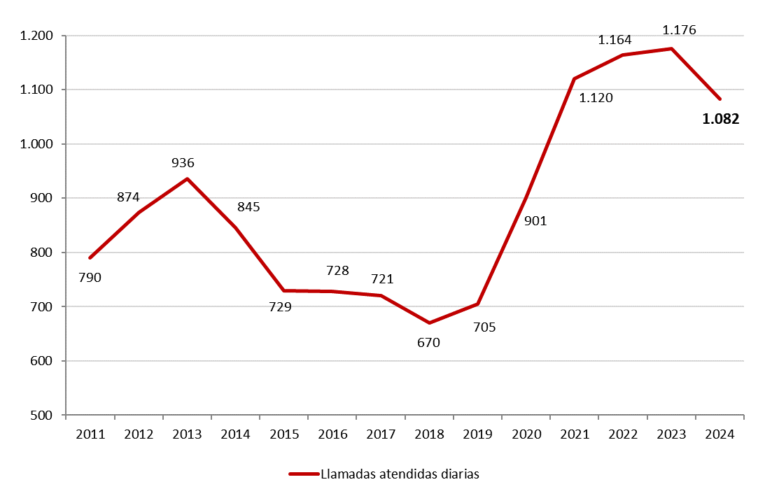 Gráfico nº 25. Evolución temporal llamadas telefónicas atendidas diarias - memoria 2024
