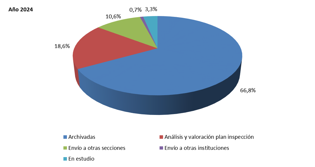 Gráfico nº 37. Denuncias tramitadas según tipo de tramitación - memoria 2024