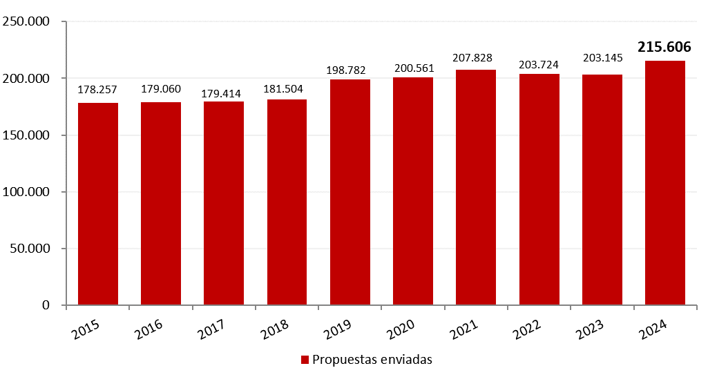 Gráfico nº 41. Evolución temporal del número de propuestas autoliquidación IRPF enviadas.