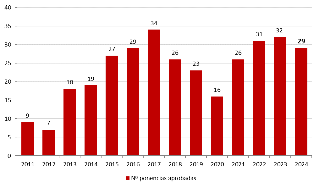 Gráfico nº 54. Evolución temporal del número de ponencias de valoración aprobadas.