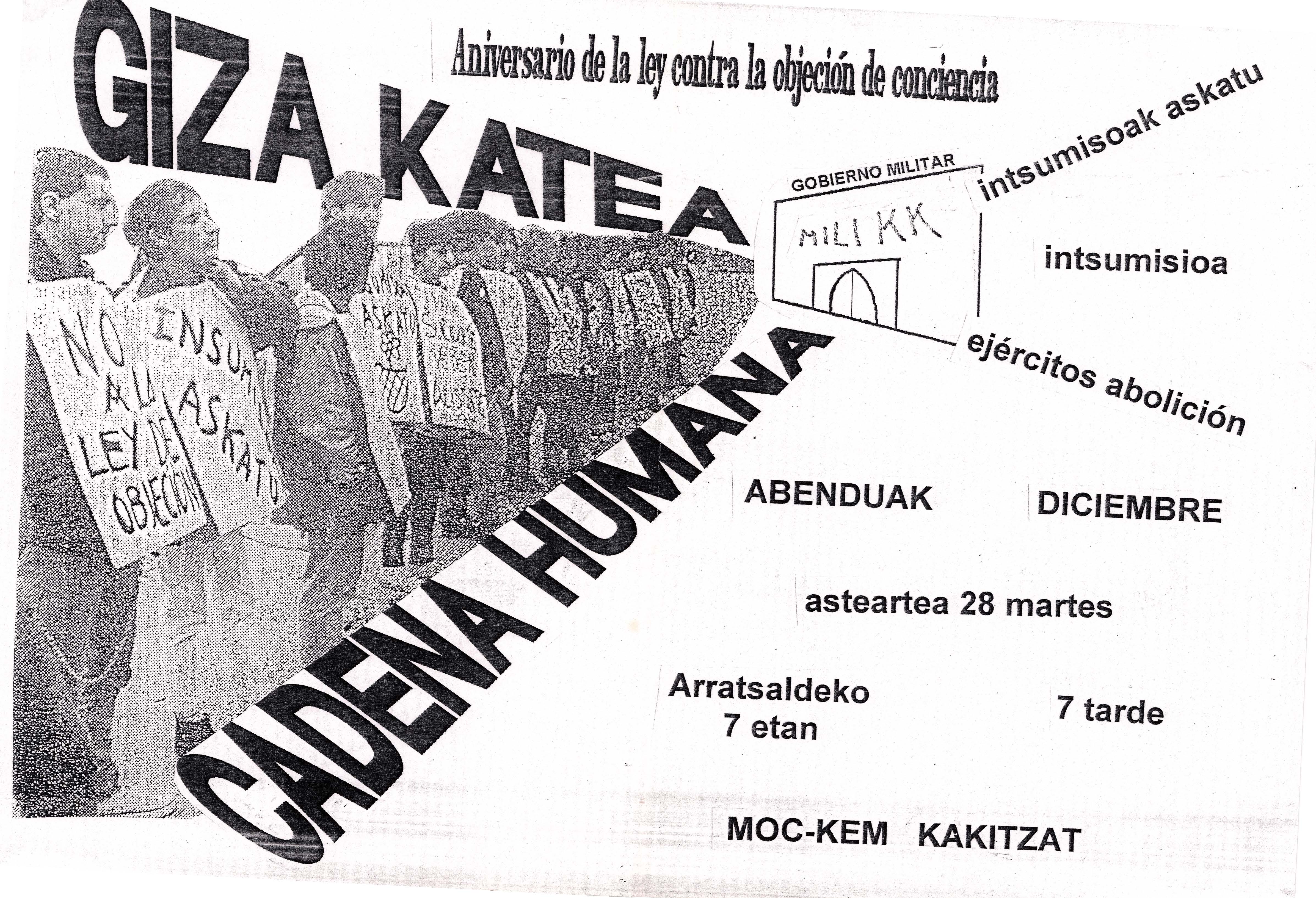 Convocatoria de una cadena humana en Pamplona el día 28 de diciembre de 1993, con motivo del aniversario de la Ley contra la Objeción de Conciencia.