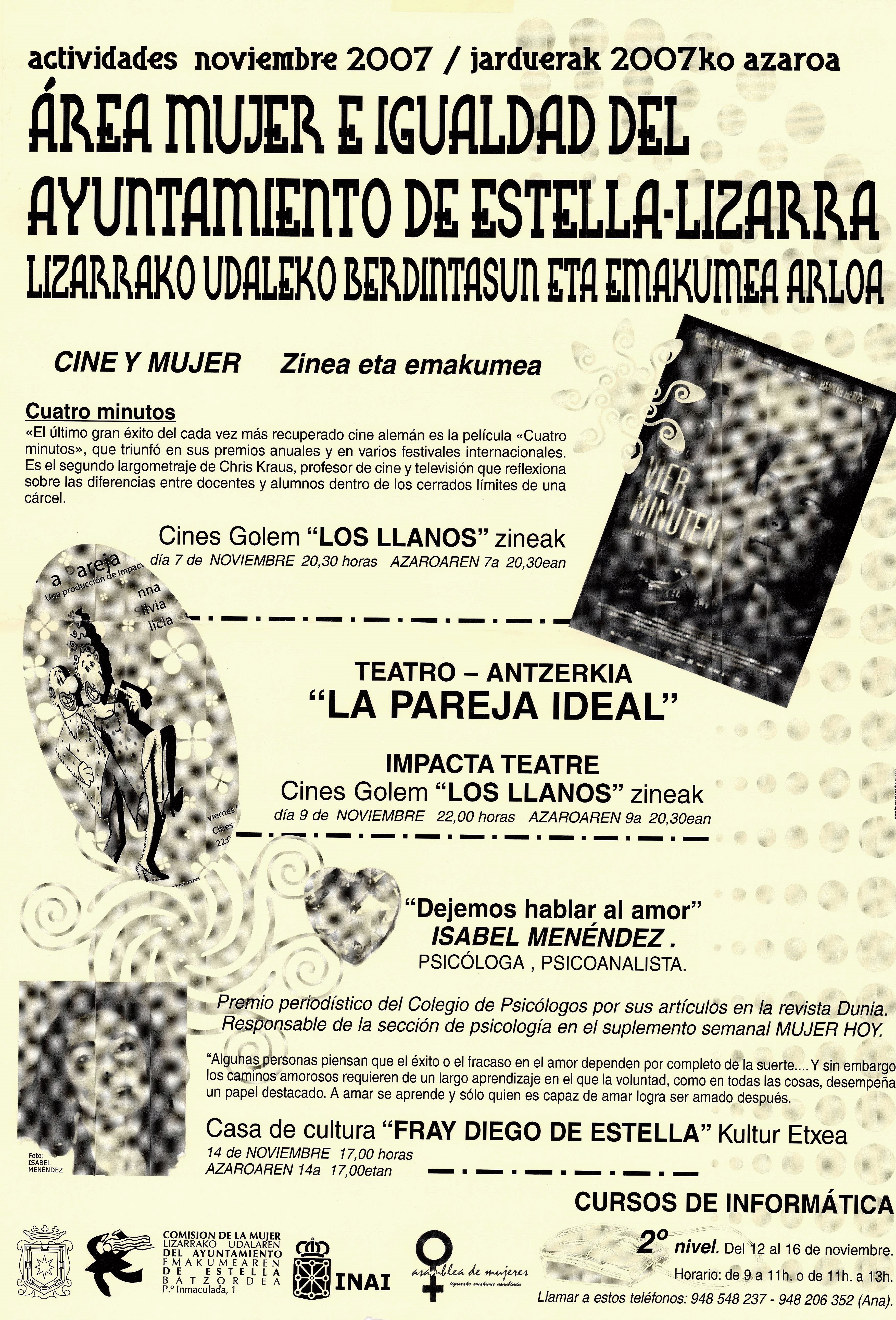 Área Mujer e Igualdad del Ayuntamiento de Estella. Actividades noviembre 2007 = Lizarrako Udaleko Berdintasun eta Emakumea arloa. Jarduerak 2007ko azaroa