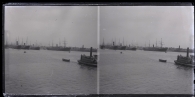 • Contenido: Vista del puerto de Barcelona desde el mar. En primer término, una barca remolcada por un barco. En segundo plano, 4 buques atracados en el puerto. Detrás, en la derecha, el faro y, al fondo, la ciudad.