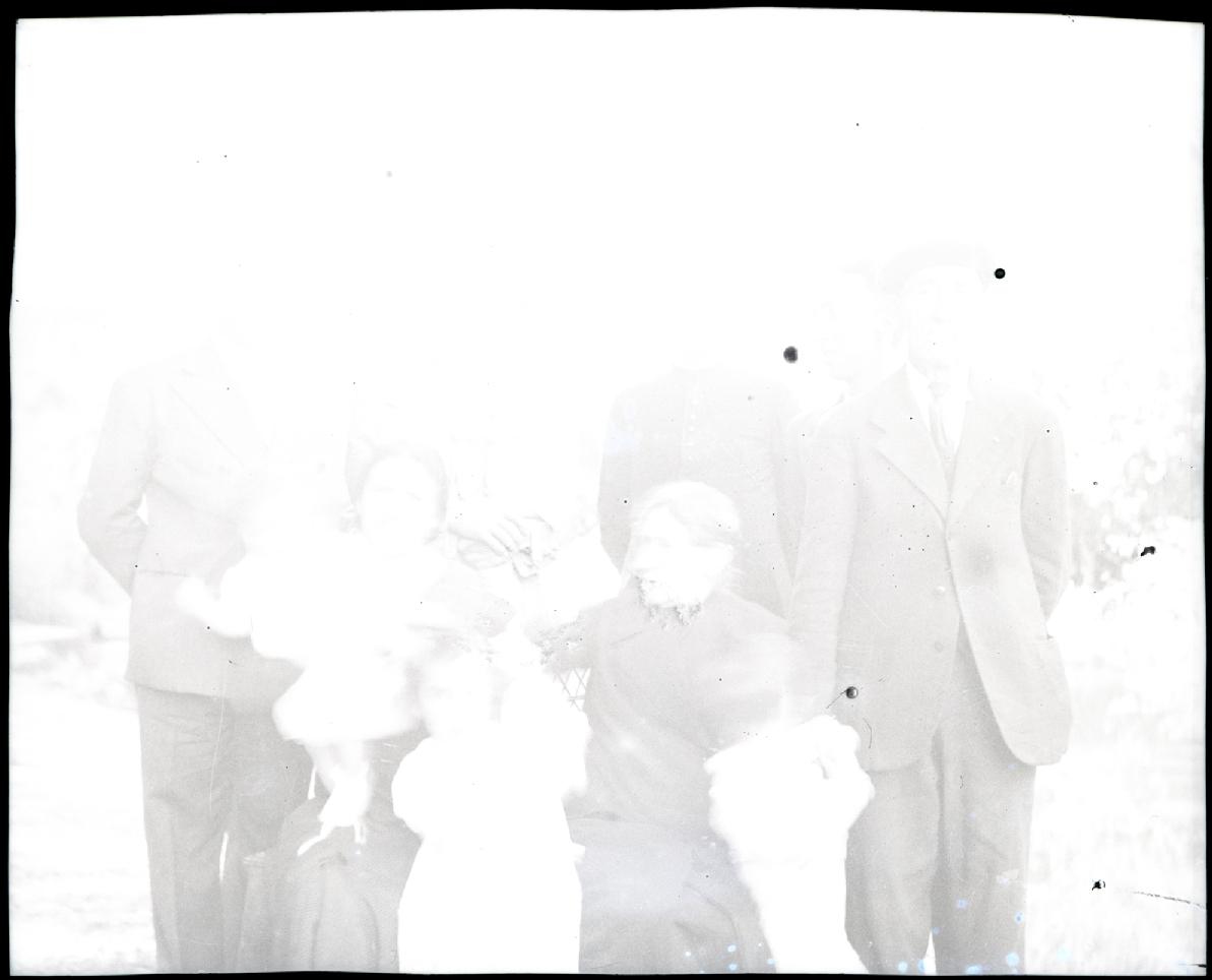 • Notas: La mujer puede ser, Anastasia Orrio y, lo hombres, Norberto Azparren Ospital y Victoriano Azparren Orrio. Los niños podrían ser: Rosario, Mª Pilar y Norberto Azparren Pérez en primer término y Cruz en brazos de su padre.