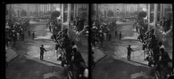 Las casas de la calle Emilio Arrieta se levantaron entre 1930 y 1933. Caja original 19. Manuscrito en una etiqueta: "19. SAN FERMIN / ENCIERRO". En el sobre original, manuscrito: "101". Degradación de tipo físico: falta fragmento de vidrio en el ángulo inferior derecho, rayas, huellas dactilares, manchas y pérdidas en la capa de emulsión. Deterioros químicos: espejeo en lo bordes. Es negativo original del positivado FOT_AMAT_N_131