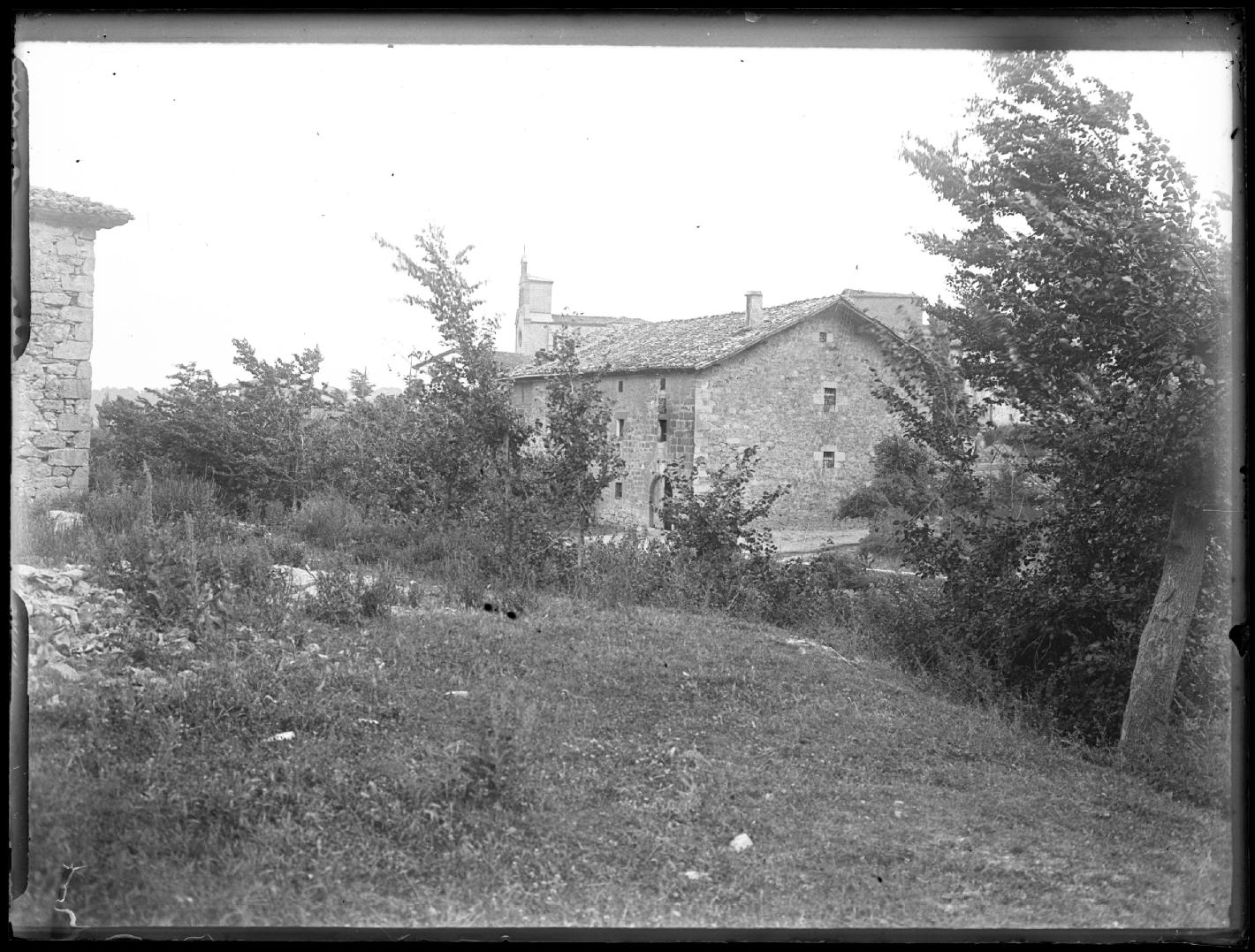 La nueva iglesia parroquial de San Andrés, visible entre el caserío, se inauguró en 1907. La imagen se reprodujo en una publicación en 1918 con el pie de imagen: "Cendea de Iza. Detalle de Erice".