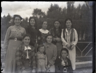 En el margen, marca impresa de la placa: AGFA. Defecto de toma, imagen desenfocada. Las notas anejas identifican entre ellas a Alegría y Andresa, sin señalar quienes son: Arriba - 5 (Alegría) / abajo Andresa / Son "Margaritas" ayudaban en el hospital.