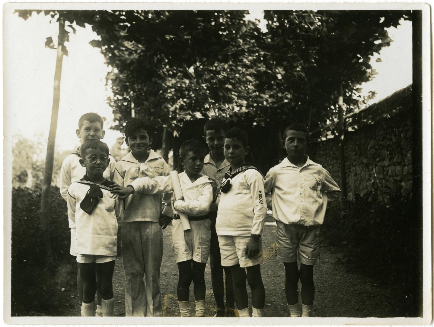• Contenido: Retrato en plano americano de un grupo de 7 niños en una camino de la localidad de Villava.
