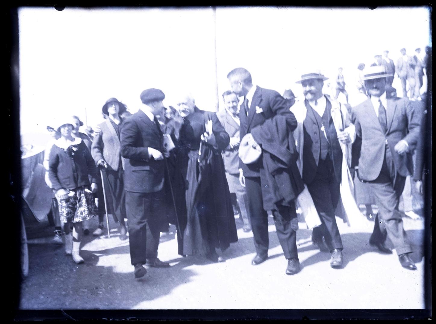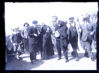 • Contenido: Escena de un grupo de personas caminando en la calle. En el centro, un sacerdote hablando con 2 hombres. A su izquierda, 2 hombres con sombrero andando. A su derecha, en un segundo plano, una niña y una mujer, ambaas con sombrero.