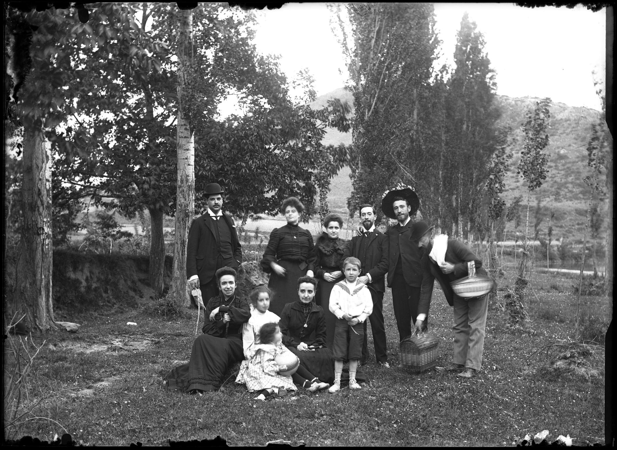 Julio Altadill regresó a Navarra tras servir como profesor en la Academia del Cuerpo Administrativo del Ejército de Ávila hasta 1891, donde desarrolló su actividad como fotógrafo aficionado. Por la indumentaria de los retratados se puede fechas antes de 1910. Pérdida de la capa de emulsión en los bordes.