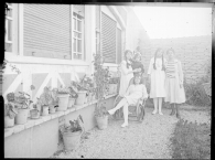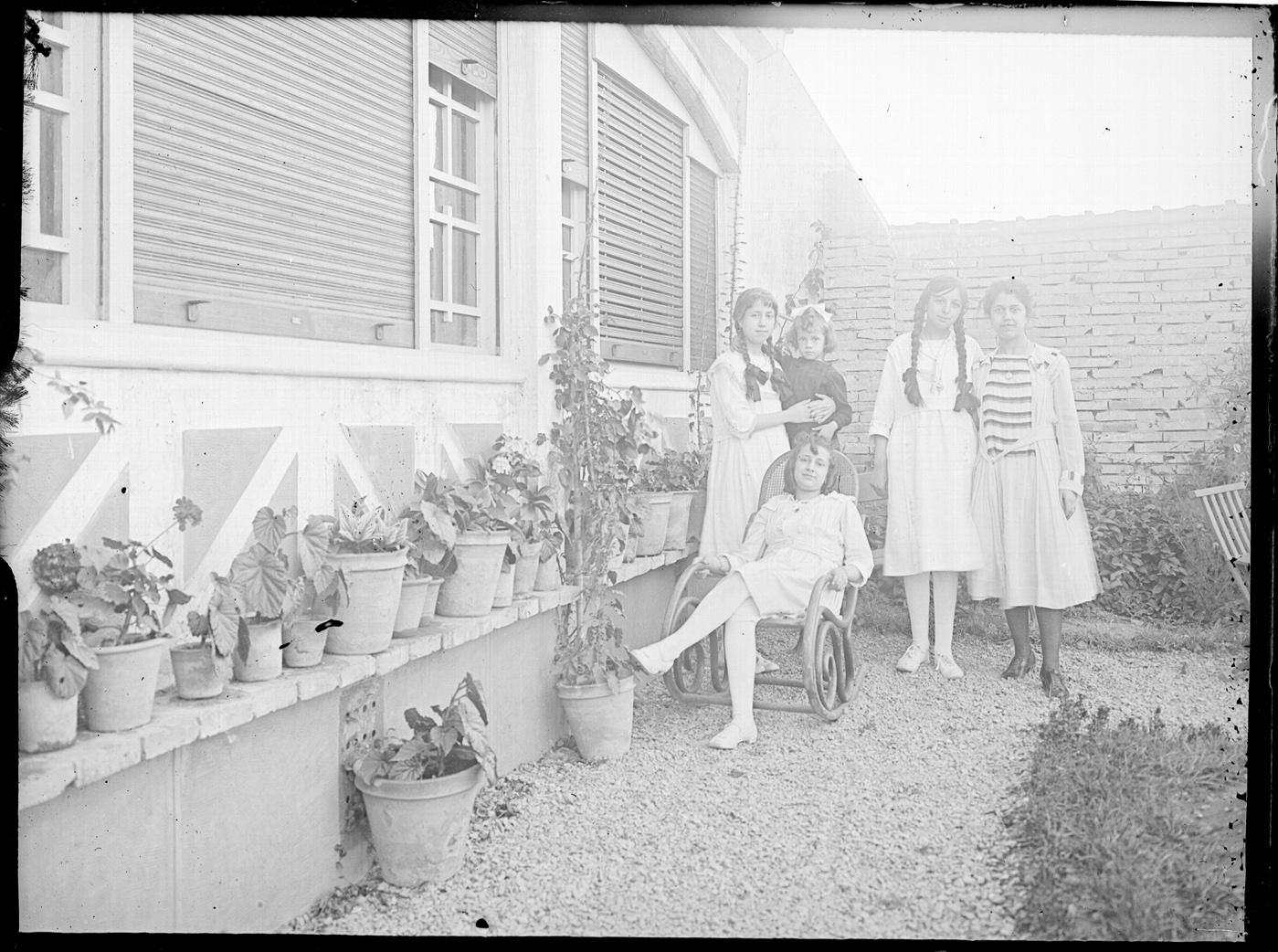 La imagen es posterior a la ampliación de la casa con la construcción del comedor acristalado, que puede fecharse hacia 1915. Por la edad de las retratadas, la imagen puede fecharse antes de 1920.