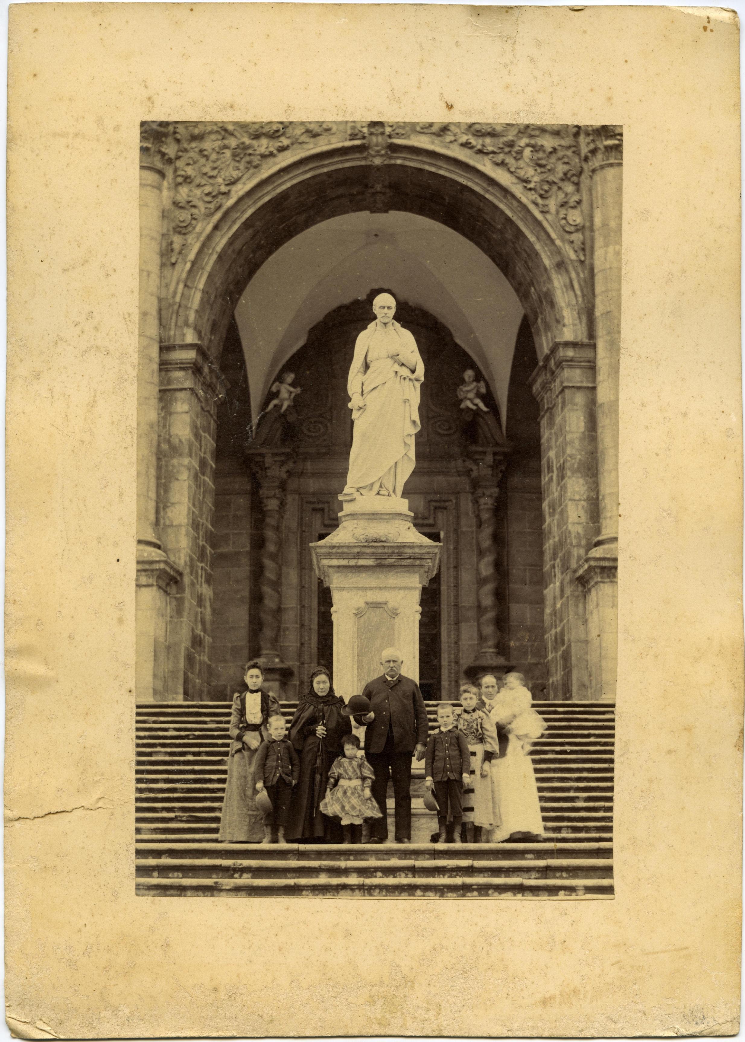 • Contenido: Retrato en plano entero de la familia Iraizoz Gastesi en las escalinatas del santuario de Loyola, delante del monumento a San Ignacio, en el municipio de Azpeitia, Guipúzcoa. El matrimonio, María Fermina Gastesi Erviti y Martín Esteban Iraizoz Oyarzun, tuvo 6 hijos, María Luisa, Mariana, Martín, Francisco, Josefina y Francisca.