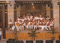 La rondalla de Los Amigos del Arte en la sala de Armas de la Ciudadela de Pamplona.