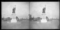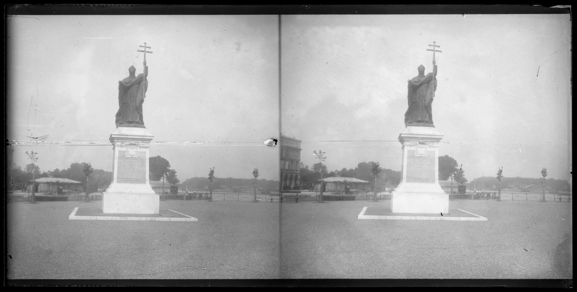 Vista frontal del monumento al cardenal Charles Martial Lavigerie situado en la plaza Reduit de la ciudad de Bayona. Al fondo, el río Adour y, en la izquierda la casa consistorial.