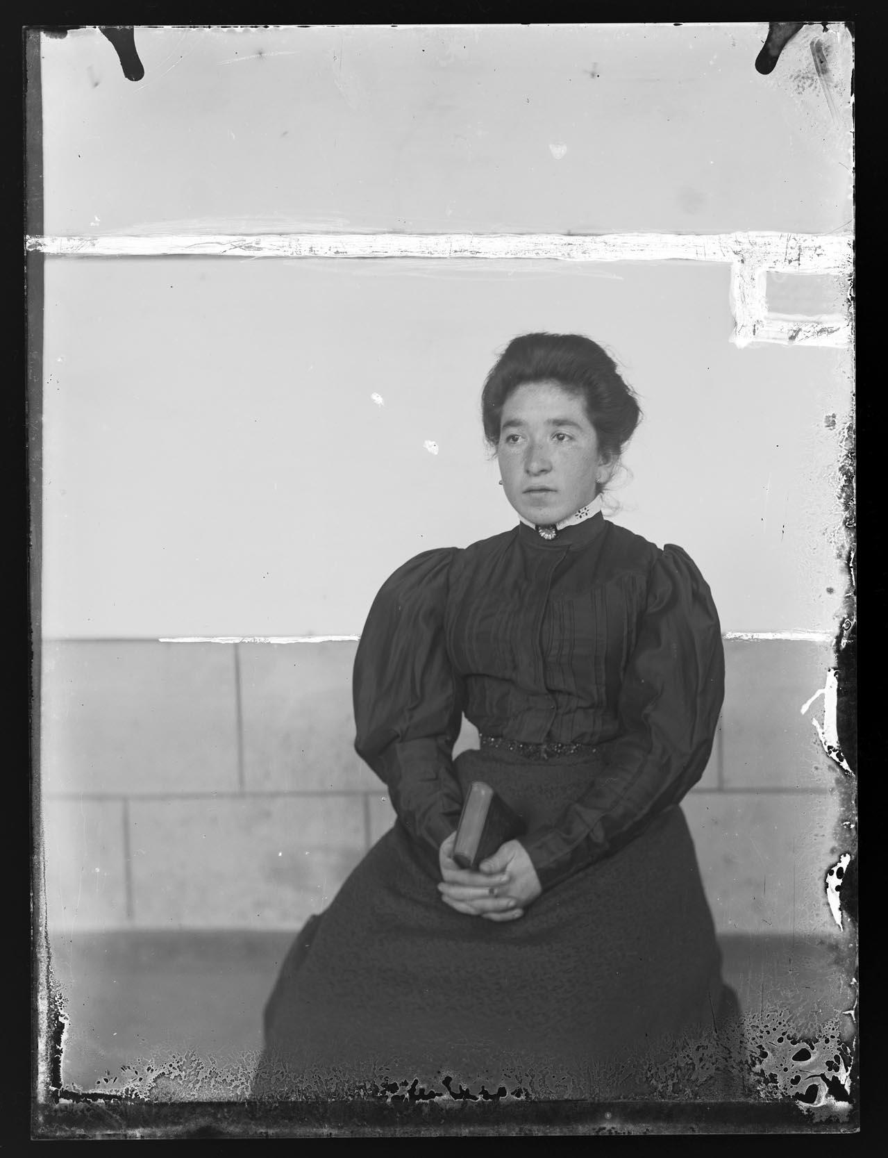 • Contenido: Retrato en plano americano de un mujer sentada con un libro cerrado entre las manos.