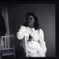 • Contenido: Retrato en plano americano de una mujer joven sentada en una silla.