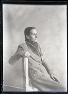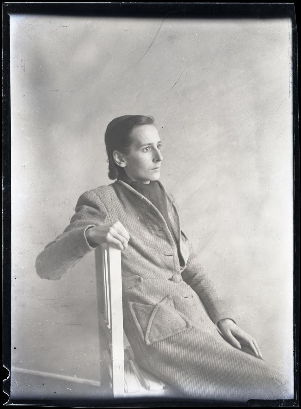 • Contenido: Retrato en plano americano de una mujer joven con abrigo sentada en una silla.