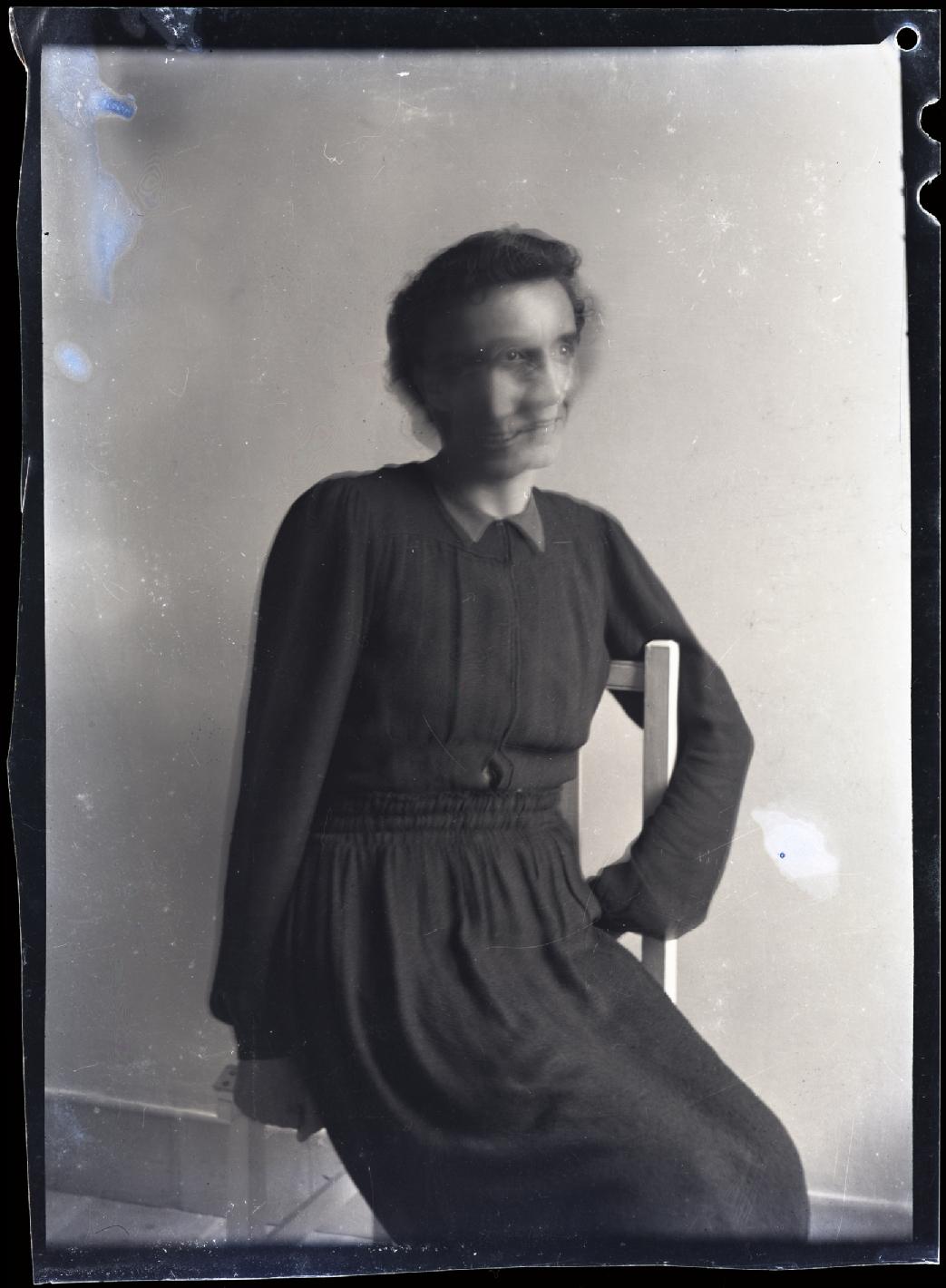 • Contenido: Retrato en plano americano de una mujer joven sentada en una silla.