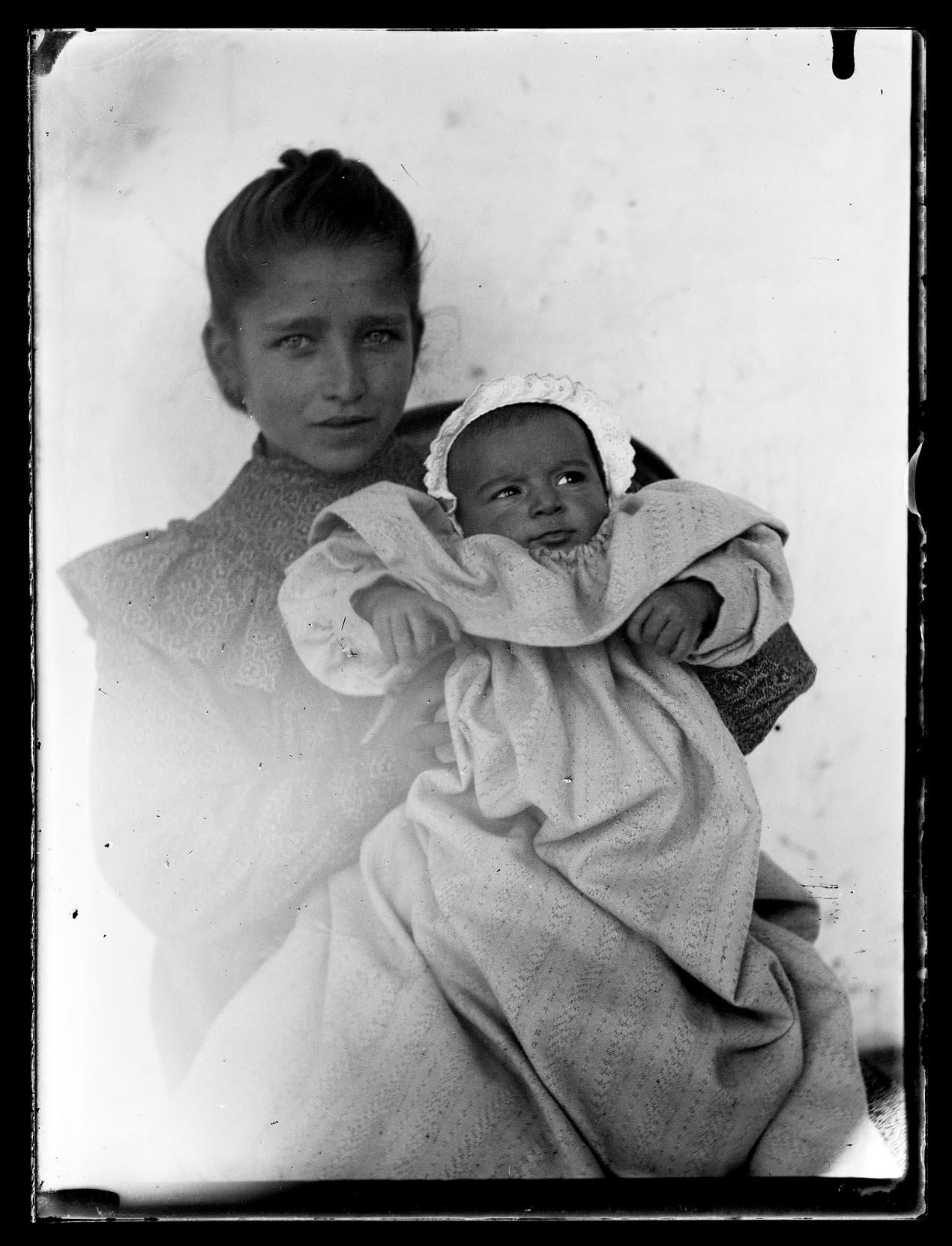 • Contenido: Retrato en plano americano de un niña con un bebé en brazos.