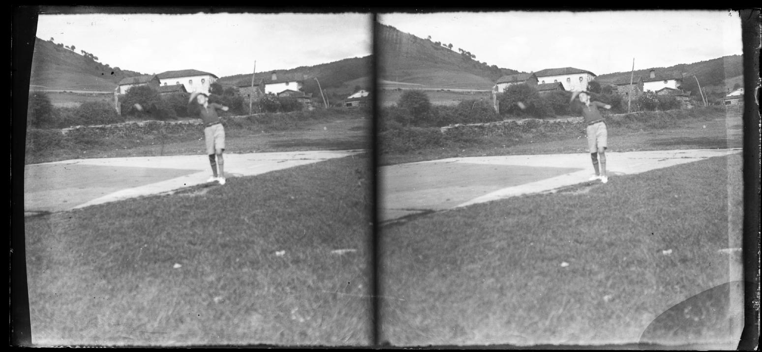 Caja original 99. Manuscrito en la tapa "99". En el sobre original, manuscrito: "252 / Etsain / Fronton - Landatava / Txantxo + Goñi + Amatxienea". Degradación de tipo físico: manchas en la capa de emulsión. Deterioro químico: espejeo en los bordes.