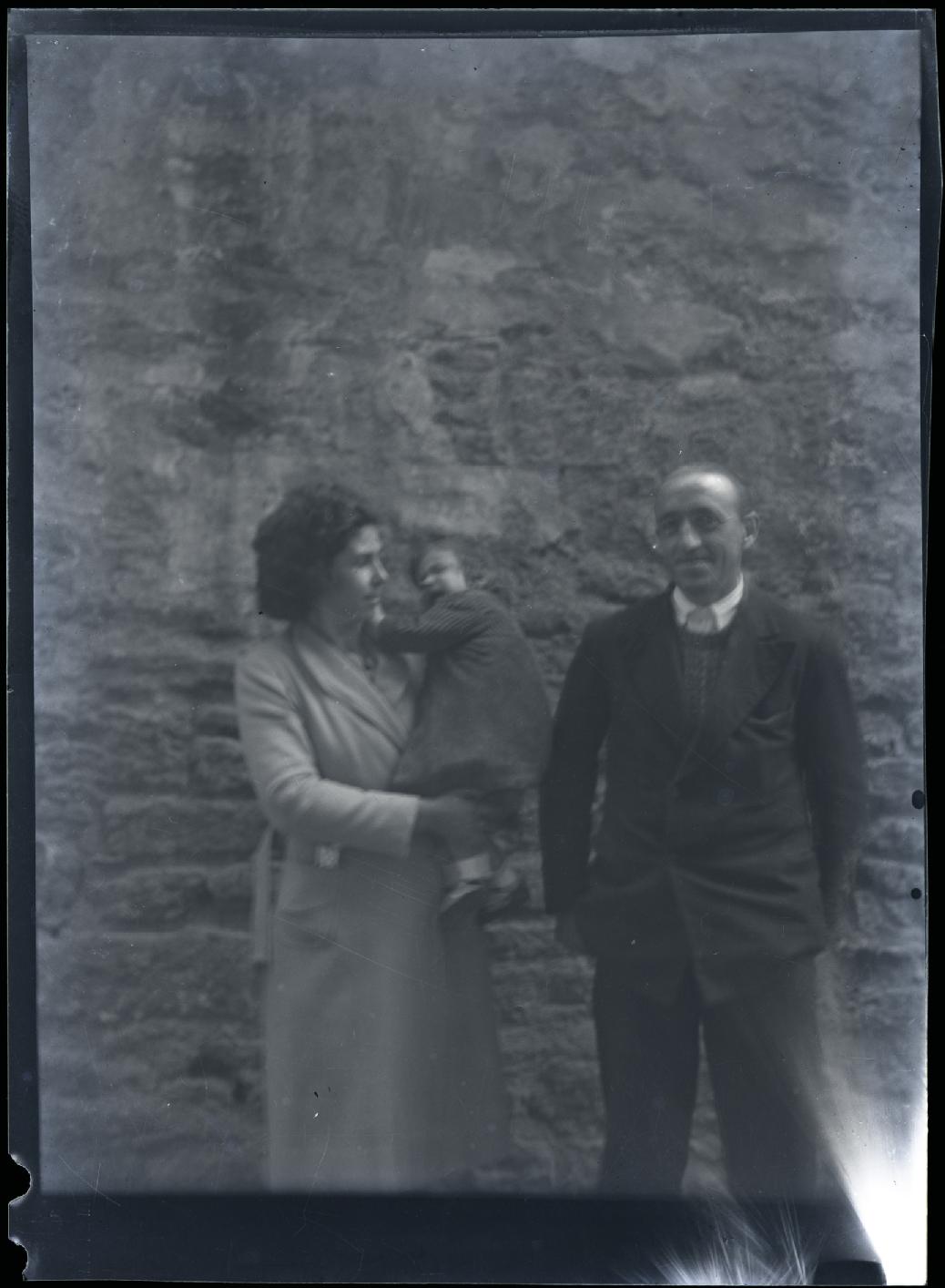• Contenido: Retrato en plano americano de una mujer con un niño en brazos y un hombre delate de un muro.
