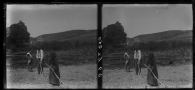 Personas trabajando la parva en la mies en Esáin, valle de Anué.