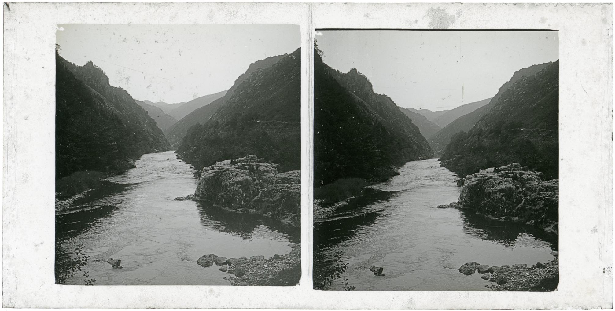 • Contenido: Vista del cauce de un río entre montañas.