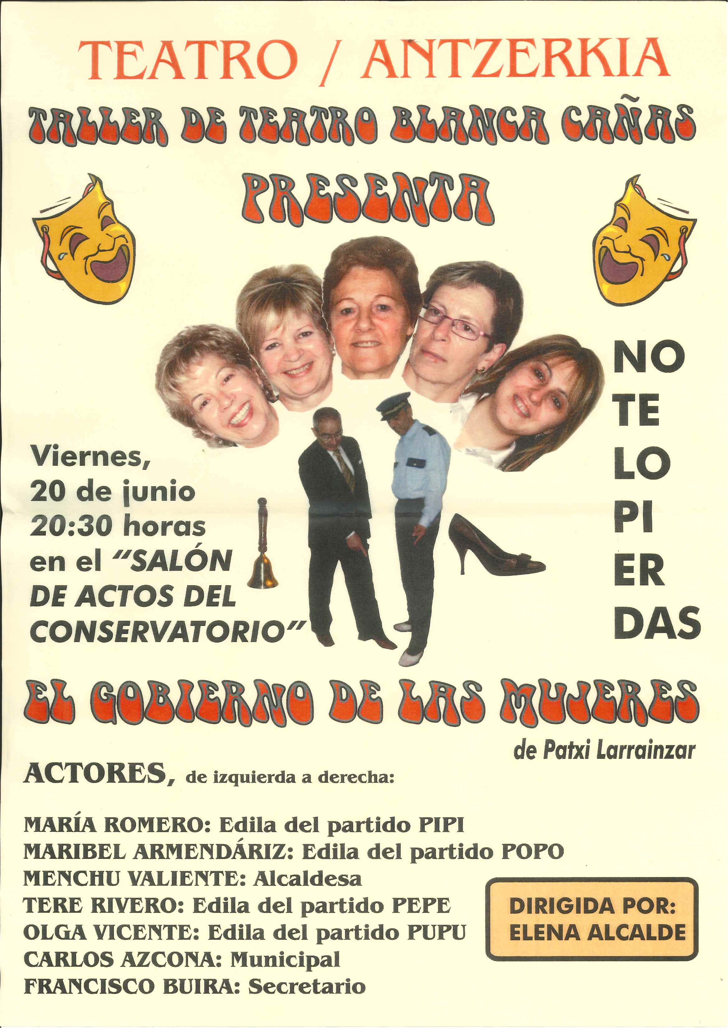 • Título: Teatro = Antzerkia. Taller de teatro Blanca Cañas presenta "El Gobierno de las Mujeres" de Patxi Larrainzar