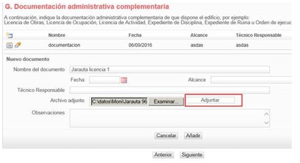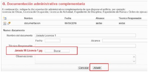 2. De modo que le aparezca en rojo el nombre del archivo que acaba de incorporar, y pulse Añadir, para añadir la fila.