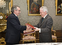 Nafarroako Gobernuko Presidenteak, Miguel Sanz Sesmak, eta Europako Inbertsio Bankuko lehendakariordeak, Carlos Da Silva Costak, gaur goizean, Nafarroako Jauregian, akordioa sinatu dute, eta, akordio horren arabera, Europako Bankuak 300 milioi eurora bitarteko mailegua emango dio Foruko exekutiboari, Nafarroa 2012 Planaren barruko 45 proiektu finantzatze aldera.