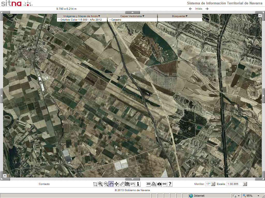 Eraikitzen ari diren AHTeko zatiaren ortoargazkia Alesbestik pasatzean (goian ezkerraldean). Nafarroako Autobidearen eta NA-121 arteko bidea ikus daiteke.(irudia handitu)
