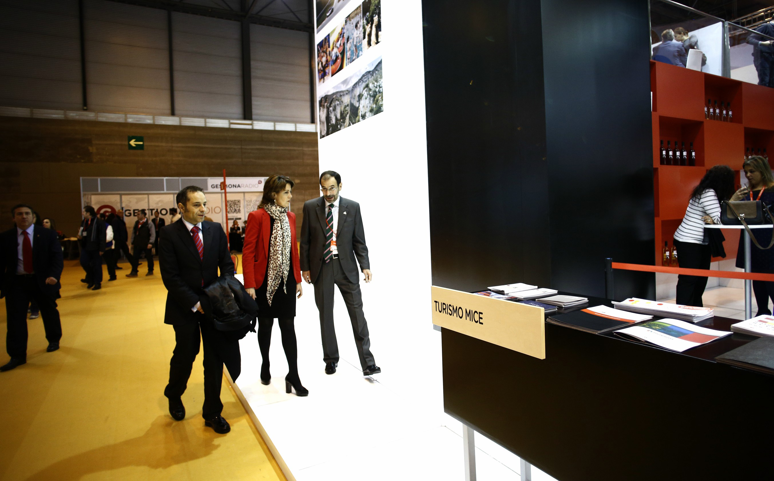 Barcina Lehendakaria Sánchez de Muniáin kontseilariarekin eta Turismoko zuzendari Carlos Ercerekin Fitur-eko stand-ean.(irudia handitu)