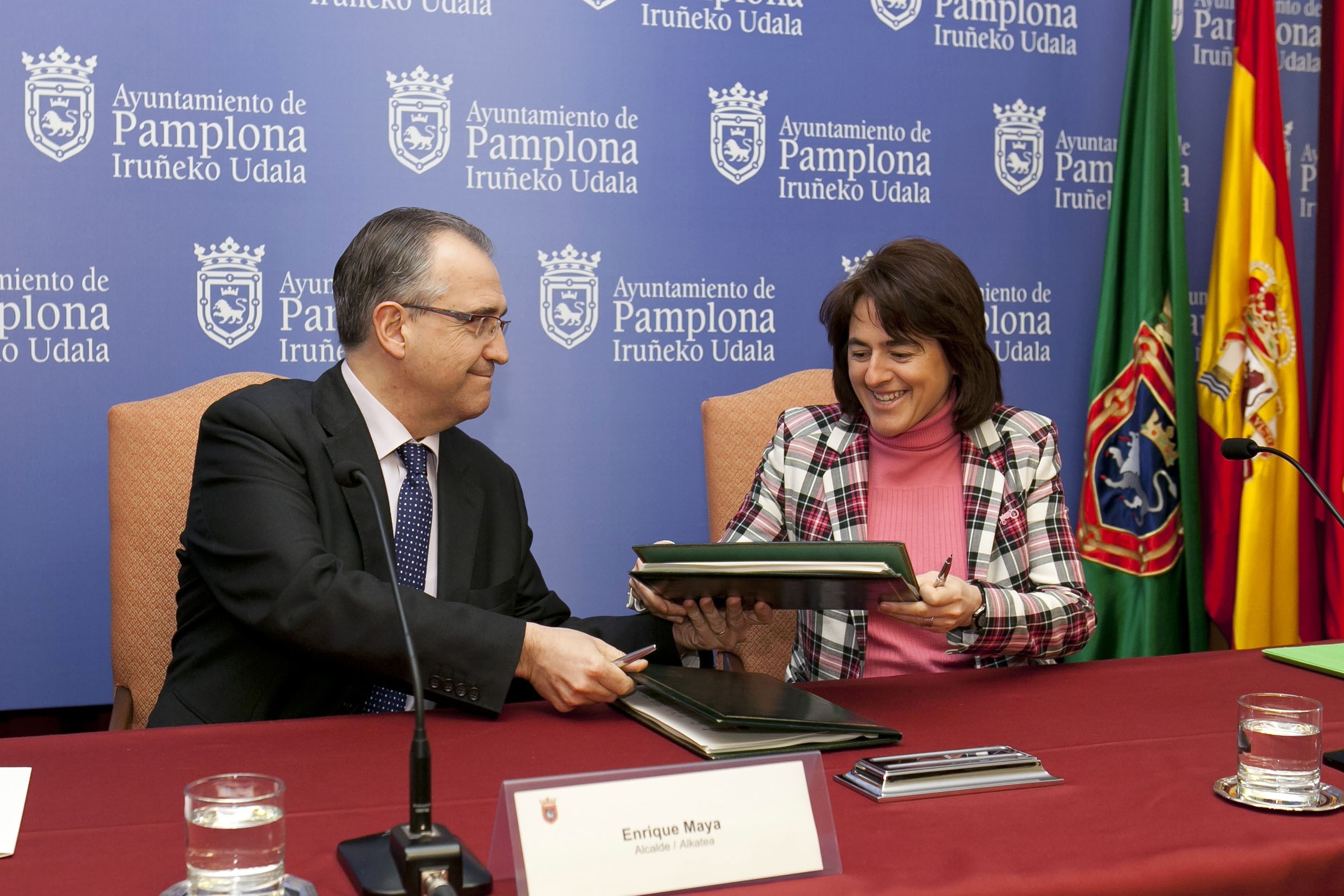 Iruñeko alkate Enrique Maya eta Vera kontseilaria lankidetza-hitzarmena izenpetzen.(irudia handitu)
