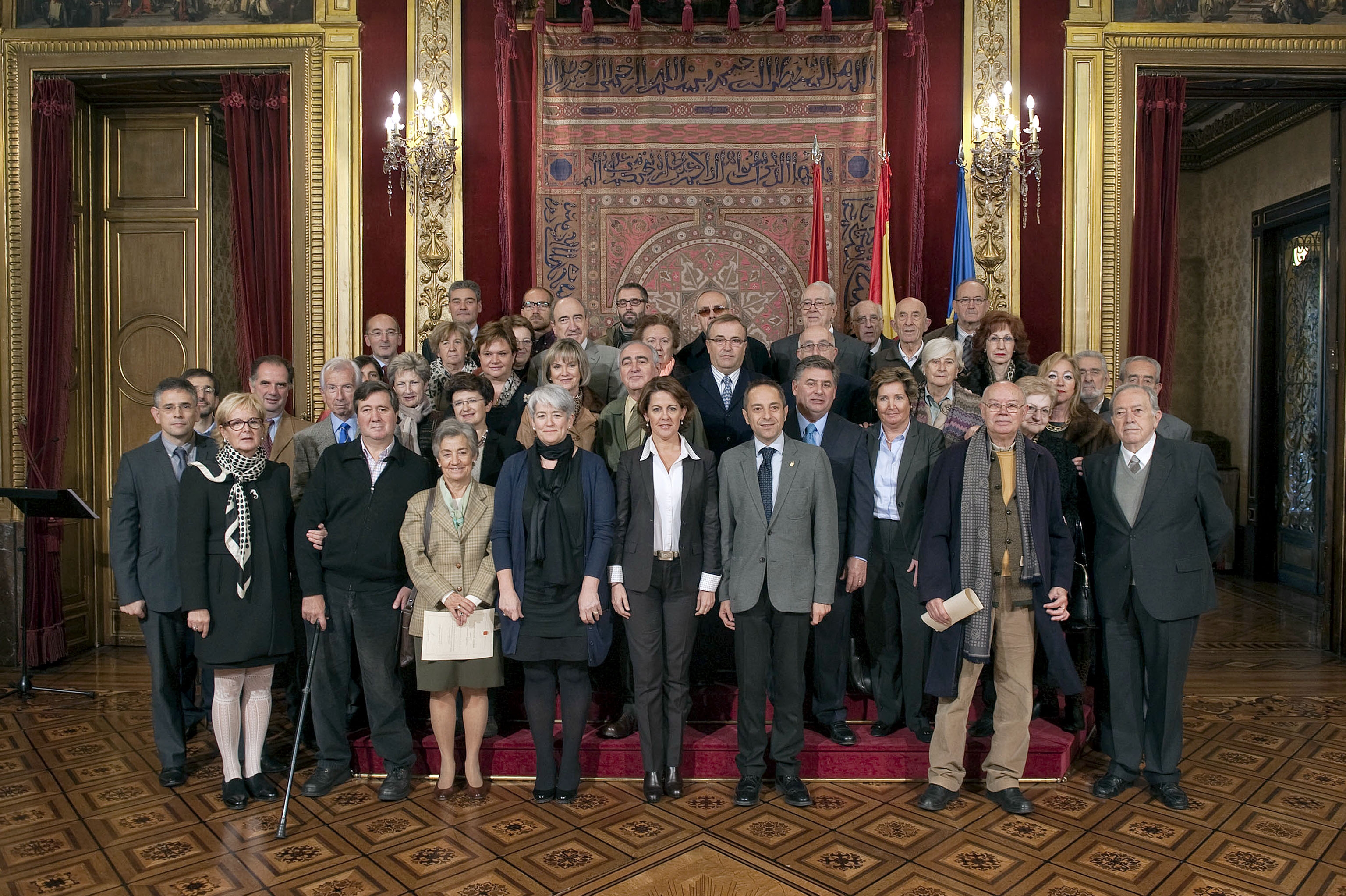 Barcina Lehendakaria eta Goicoechea eta Sánchez de Muniáin lehendakariordeak, dohaintzak egin dituztenekin.(irudia handitu)