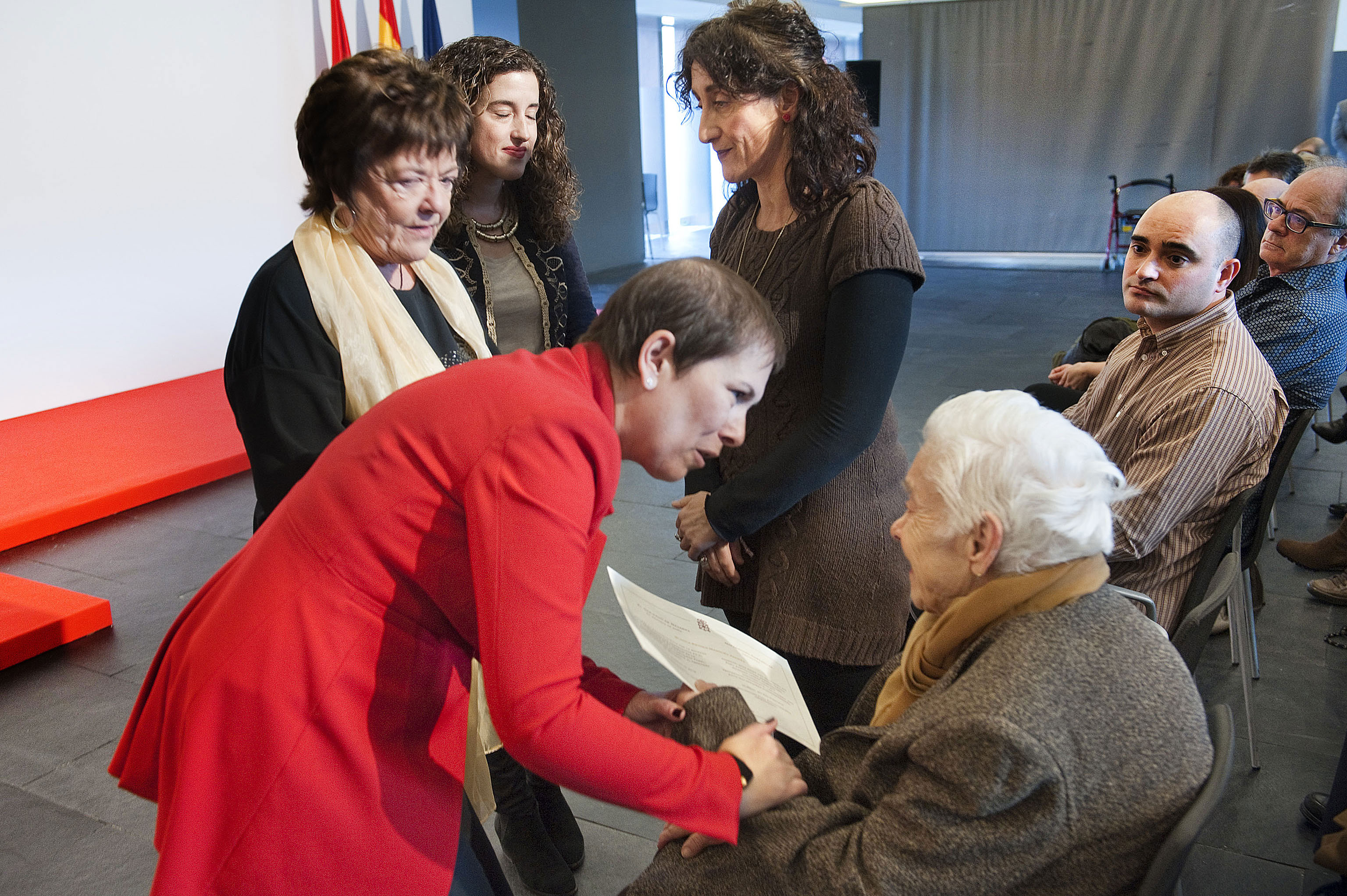 Barkos Lehendakaria Vicenta Andres Medinarekin, Burlatan emakumeen aurkako ustezko eraso batean hildako Blanca Esther Marques Andrésen ama, Beaumont kontseilari eta Blancaren ahizparekin batera. (irudia handitu)