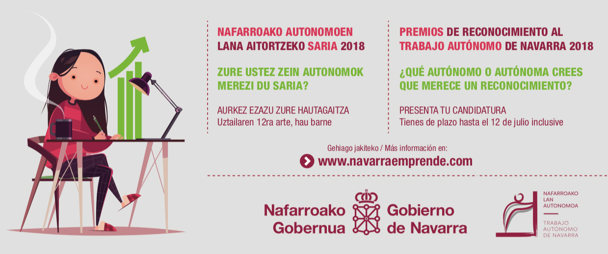 Jakina denez, Nafarroako Gobernuak ospe sozial handiagoa eman nahi dio norbere konturako lanari, eta, horretarako, zeregin hori nabarmentzen duten sarietarako deia egiten du. Hautagaitzak aurkezteko epea uztailaren 12ra arte egongo da zabalik, oinarri hauei jarraikiz, eta Nafarroako Gobernuaren webguneko izapide-katalogoaren fitxan azaltzen da nola aurkeztu behar diren.