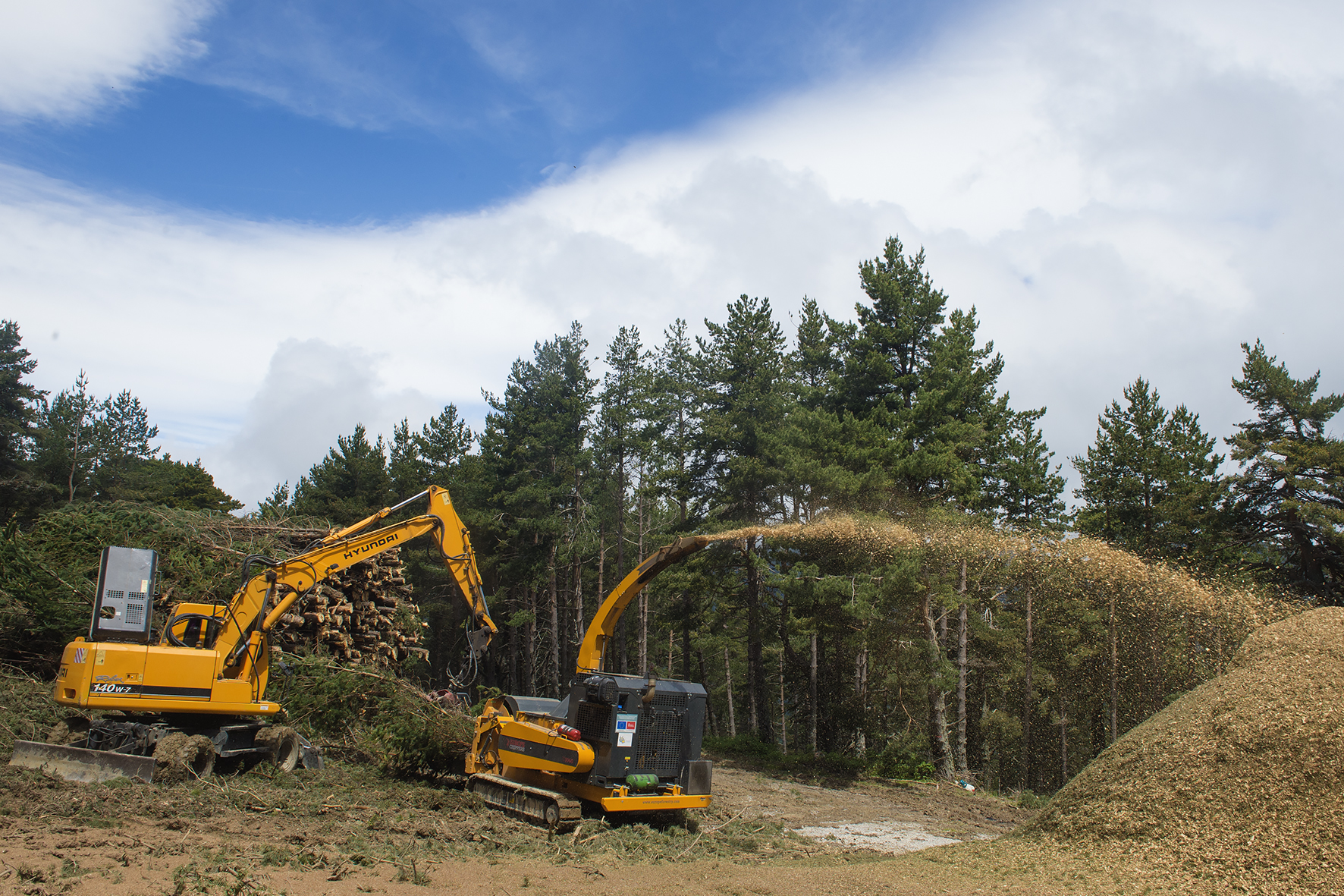 Proiektuaren barnean, zizailatzeko makinak zuhaitzak osorik mozten ditu, ondoren basoko autokargatzaile baten bidez kargatzeko tokiraino eramateko. Hemen, atzerako hondeamakina pintzadunak ezpala egiteko makinara botatzen ditu, eta ezpala mendian bertan egiten da. Azkenik, kaxa itxiko kamioietan jaisten da helmugaraino.