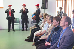 Los gaiteros Hermanos Montero actúan ante las autoridades y el público.(irudia handitu)