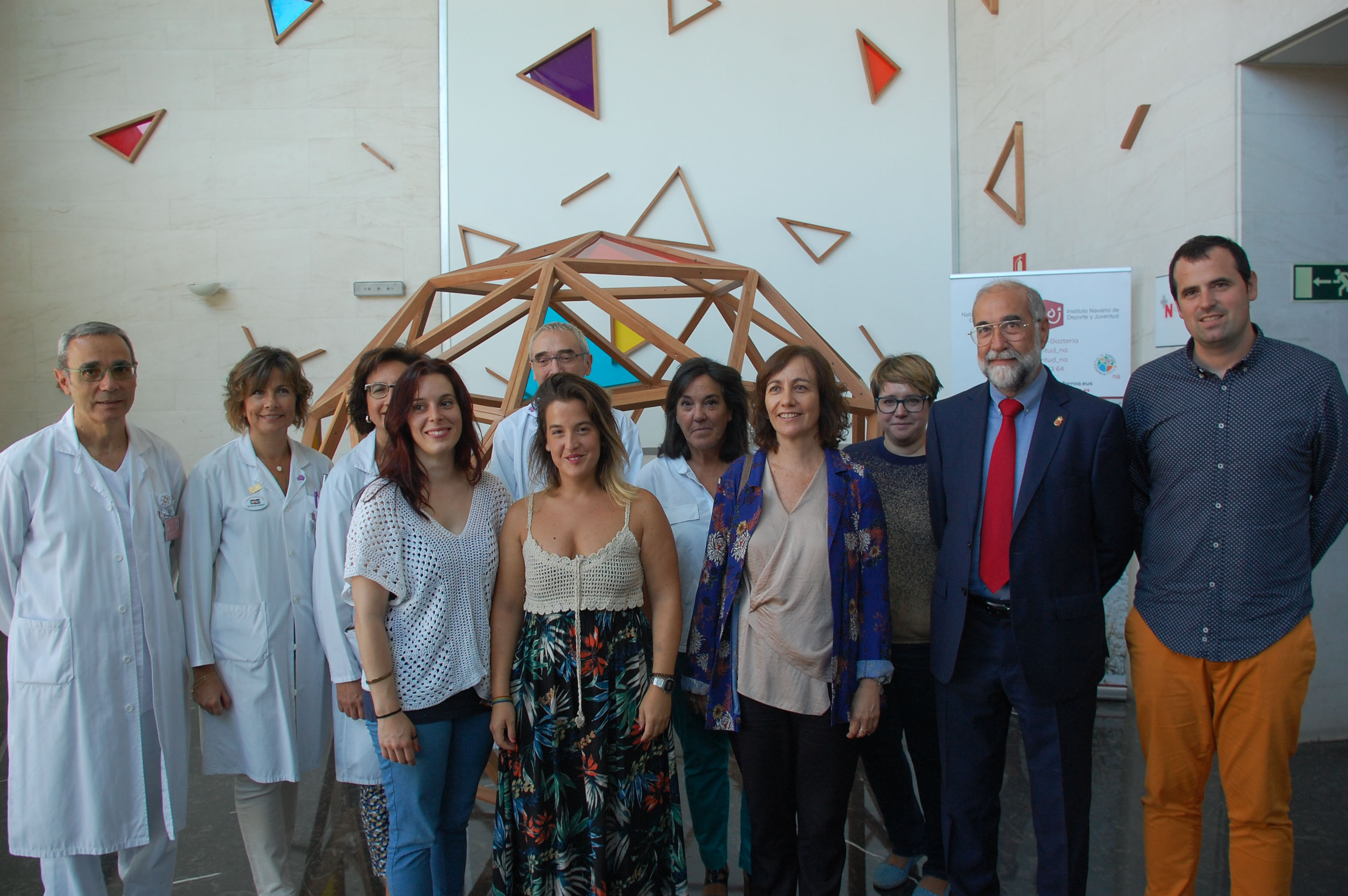 Representes del CHN, Aloha y Eli (en el centro), la consejera Herrera, el consejero Domínguez y el director gerrente del INJD, Rubén Goñi.(irudia handitu)